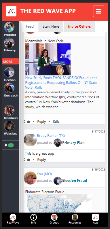 The Red Wave App has America First resources, along with groups to discuss how to succeed with proven solutions.