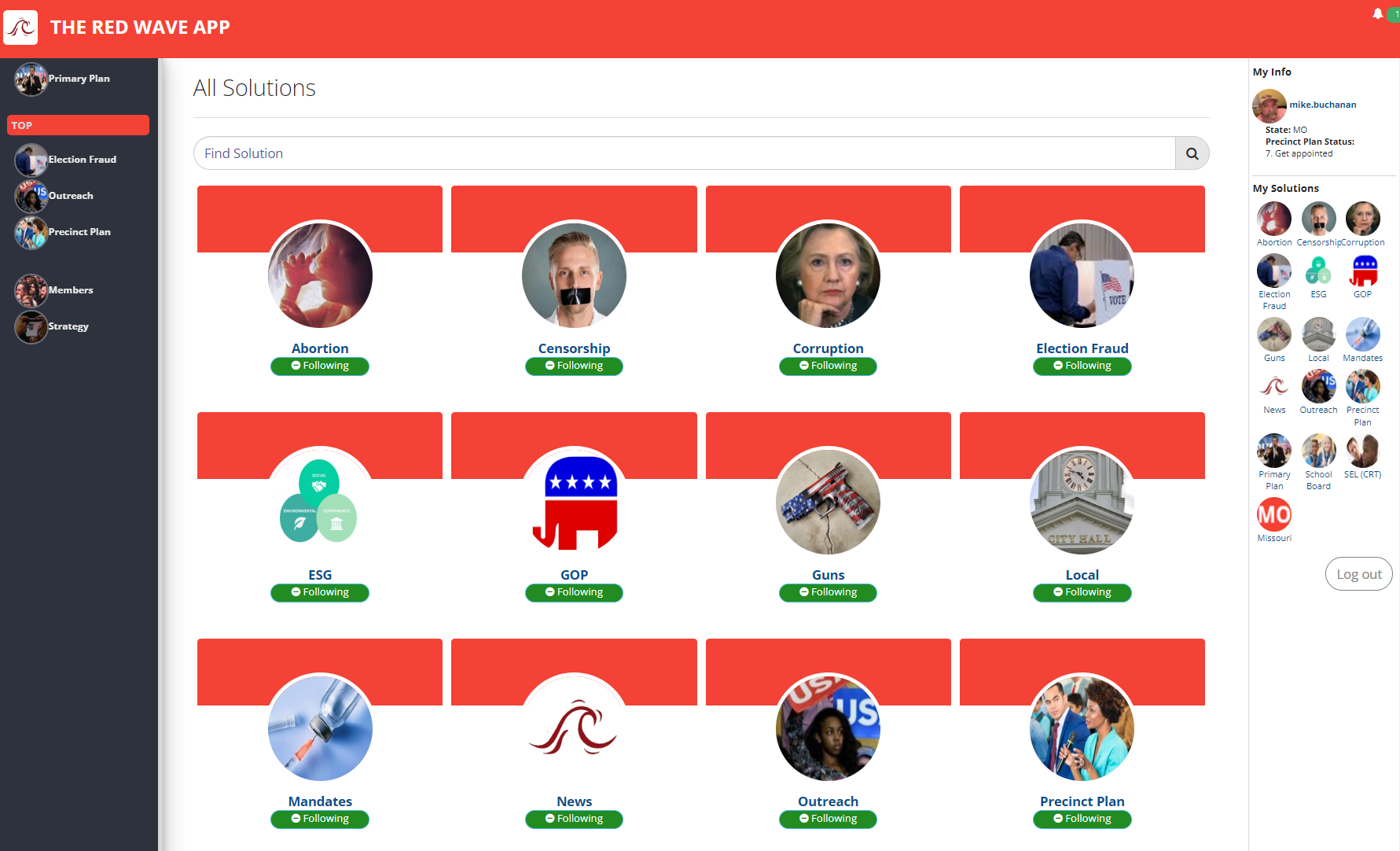 The Red Wave App helps track and coordinate solutions. Depending on the issue, members can share info about groups that are succeeding, and tactics that are working.